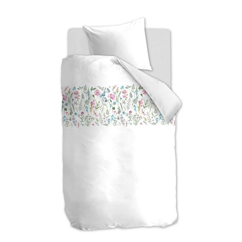 Dekbedovertrek Karee van Ambiante is wit, maar heeft een band van lentebloemen over de volledige breedte. Met dit dekbedovertrek creëer je moeiteloos een voorjaars sfeertje in de slaapkamer. Dit dekbedovertrek is gemaakt van 100% katoen en voelt fijn en zacht aan. Het dekbedovertrek heeft over de gehele breedte aan beide zijden een dubbele instopstrook waardoor het dekbedovertrek gemakkelijk onder het matras gestopt kan worden en koude voeten worden voorkomen. Het dekbedovertrek heeft aan de voor- en achterzijde hetzelfde dessin. Het overtrek kan gewassen worden tot 60 graden, is geschikt voor de wasdroger en kan gestreken worden. Dankzij de hoogwaardige kwaliteit blijft dit overtrek ook na het wassen mooi van vorm en kleur. Met bijpassende kussensloop.