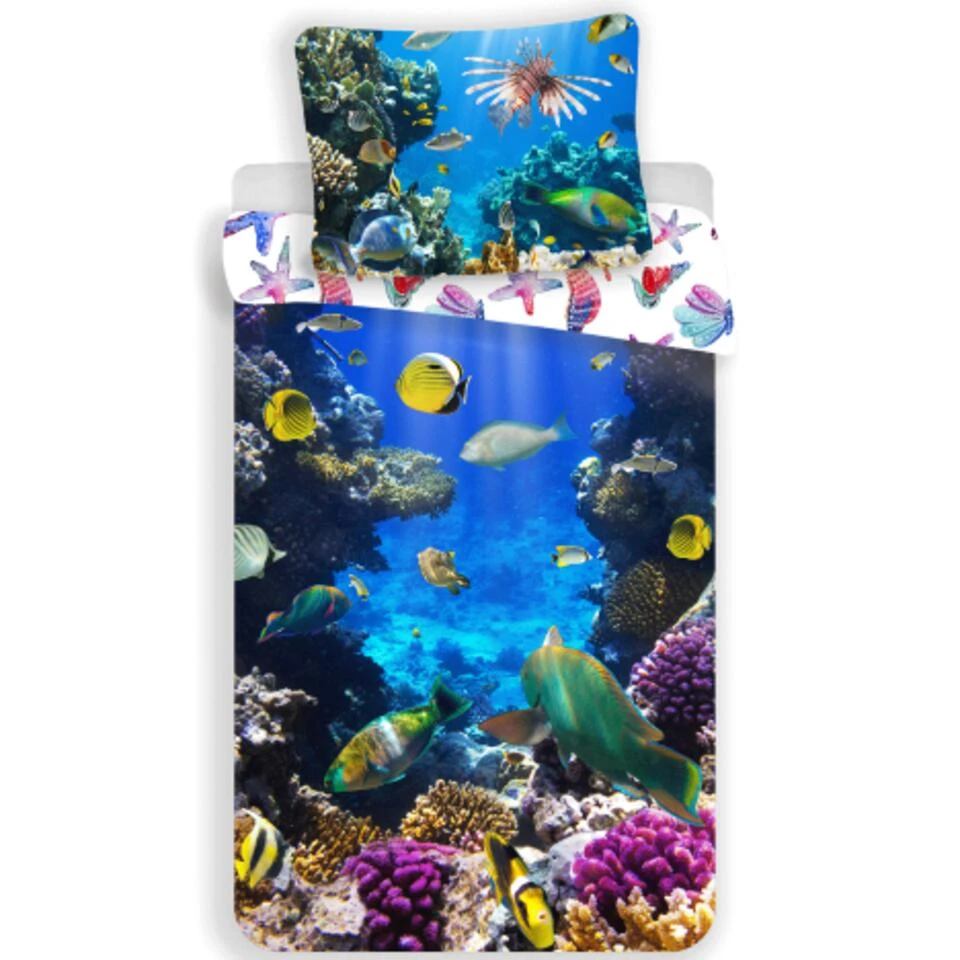 Animal Pictures Dekbedovertrek, Onderwater. Liefhebber van vissen of droom je van lange vakanties met tropische stranden en oceanen waar je heerlijk kan snorkelen? Dan is dit hét dekbed voor jou; een onderwaterwereld met allerlei tropische vissen en kleurrijk koraal. Het dekbedovertrek is gemaakt van katoen en wordt geleverd met een extra groot kussensloop. Op de achterzijde staat een dessin van schelpen en zeesterren, waardoor er gevarieerd kan worden met het opmaken van het bed. Een geweldig cadeau voor een verjaardag of de feestdagen. Welke liefhebber van duiken of snorklelen maak jij hier blij mee?