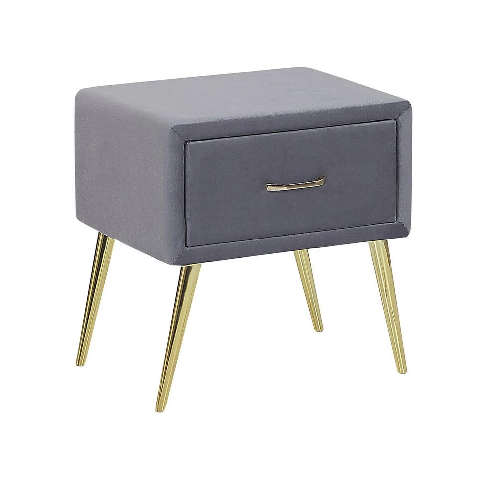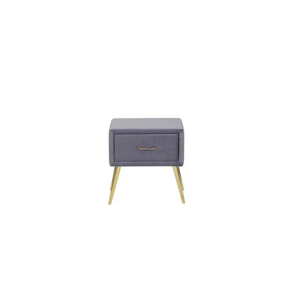 Modern fluwelen nachtkastje met 1 lade. Met zijn elegante design is dit nachtkastje een uitstekende aanvulling op je interieur. Het is gemaakt van duurzaam hout en bekleed met fijn, hoogwaardig fluweel. De soepel lopende lade met decoratieve handgreep biedt voldoende ruimte om kleine spullen discreet en binnen handbereik op te bergen. De smalle, afgeschuinde poten zorgen voor stabiliteit en onderstrepen het moderne design. Gebruik dit veelzijdige product als nachtkastje in de slaapkamer, als bijzettafel in de woonkamer of bij de entree.