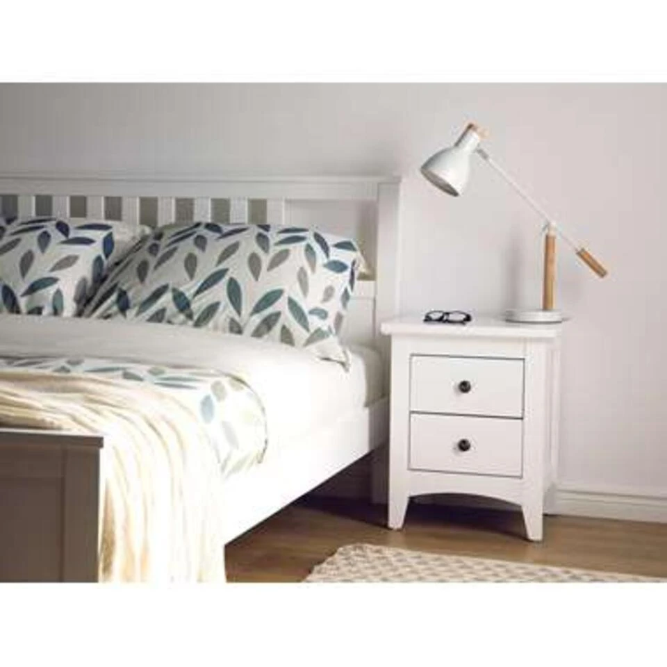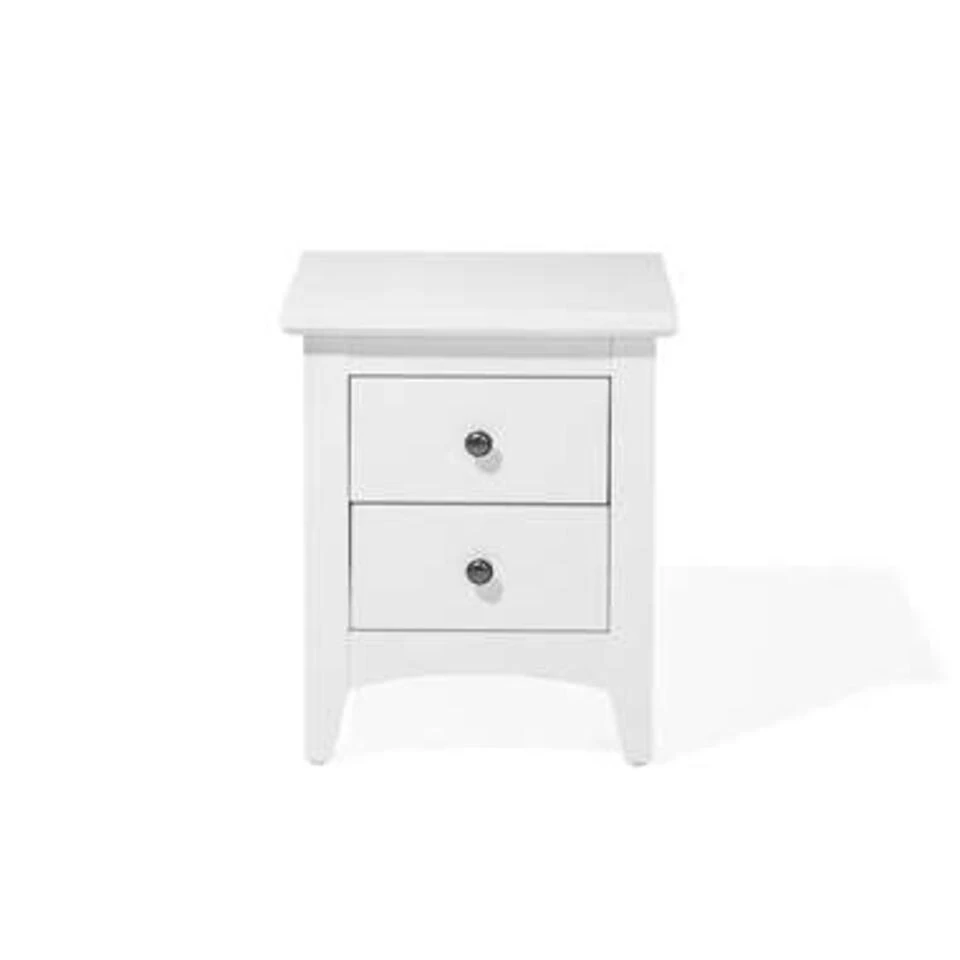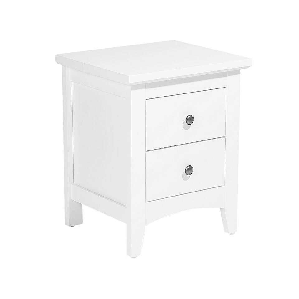 Praktische witte nachtkast met 2 lades in rustieke stijl. Dit decoratieve nachtkastje is een ideaal meubel in een klassieke, witte landhuisstijl. Daarnaast bieden twee diepe lades met decoratieve, ronde handgrepen, voldoende ruimte voor alle benodigdheden. Het blad biedt voldoende ruimte voor je wekker, een leeslamp en je favoriete boek. Het nachtkastje is gemaakt van stevig MDF en is bijzonder eenvoudig te reinigen. Geniet van klassiek design en een gezellige sfeer!