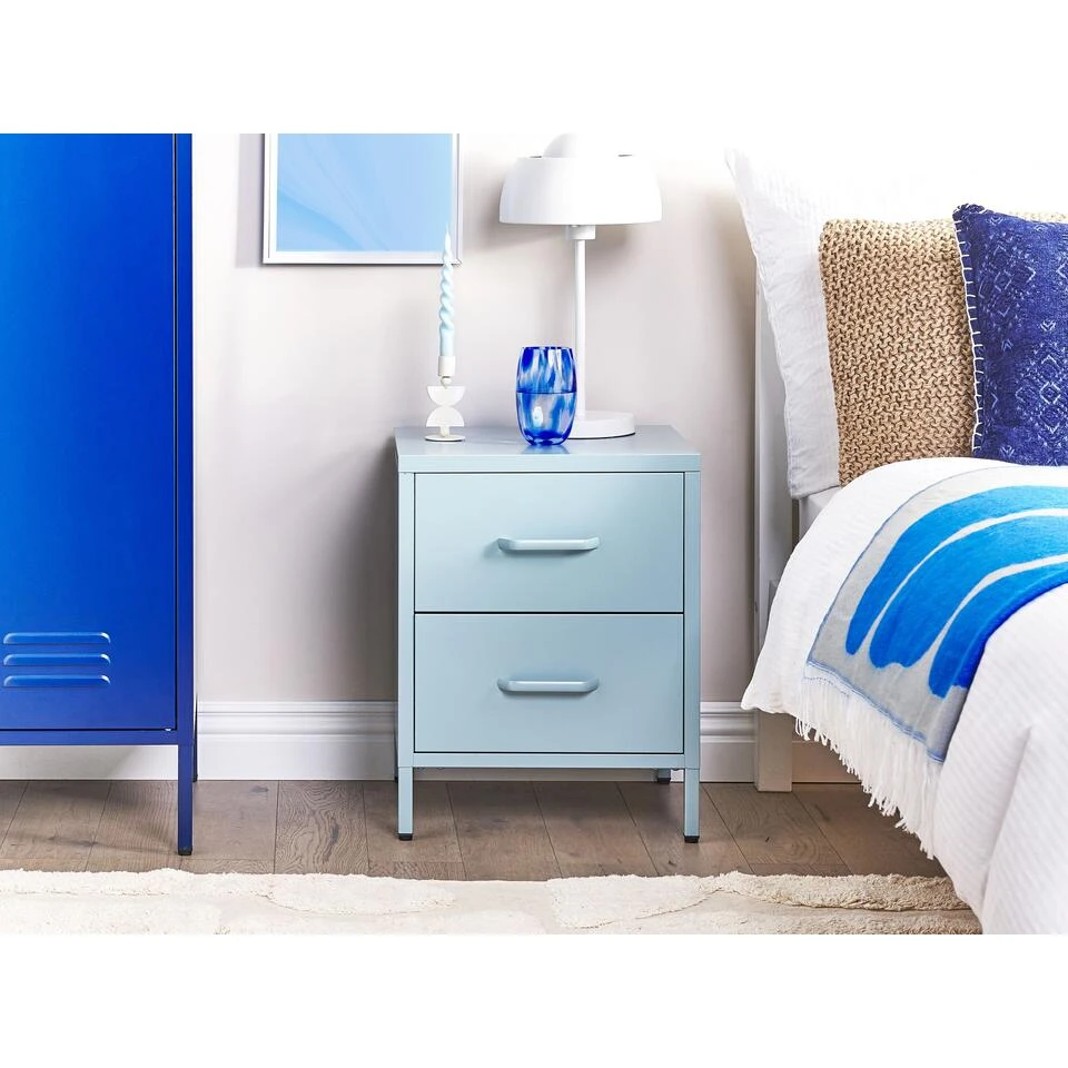 Moderne, metalen kast met 2 ruime lades. Dit nachtkastje is een perfecte manier om je slaapkamer te upgraden. Het nachtkastje is gemaakt van duurzaam en onderhoudsvriendelijk staal en gaat jarenlang mee. Het beschikt over 2 lades, die kunnen worden gebruikt om je ondergoed, boeken of andere belangrijke dingen die je ’s avonds of’ s morgens nodig hebt op te bergen. De kleur en het strakke design maken hem tot een perfecte aanvulling op de slaapkamer in elke interieurstijl.