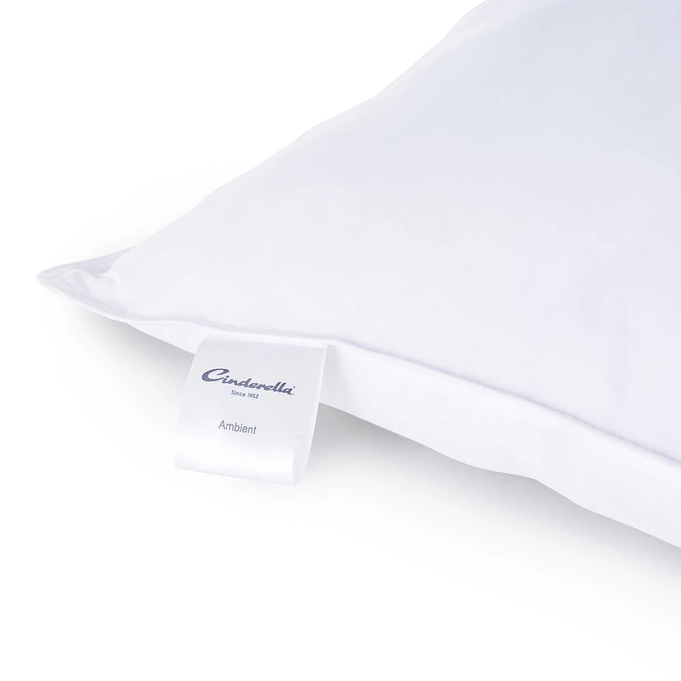 Geniet van optimaal comfort voor een aantrekkelijke prijs met deze extra voordelige set van twee Cinderella Ambient hoofdkussens. Het comfort is te danken aan de hoogwaardige vulling van Thermosoft en aan de mooie tijk die lichtelijk opgeruwd is als een perzik (peachskin). Cinderella Ambient is een weldadig zacht en soepel kussen en het volgt heel goed de contouren van je nek en hoofd. Daardoor profiteer je nog beter van de mooie kwaliteiten van dit hoofdkussen. Thermosoft heeft bijvoorbeeld goede isolerende eigenschappen omdat het in laagjes is opgebouwd waarbij de Thermosoft-vezels hol zijn van binnen. Die holtes maken het kussen lekker licht en zorgen voor goede vochtregulatie. Het kussen zal daardoor niet klam aanvoelen en dat slaapt heerlijk – zeker in de zomermaanden.