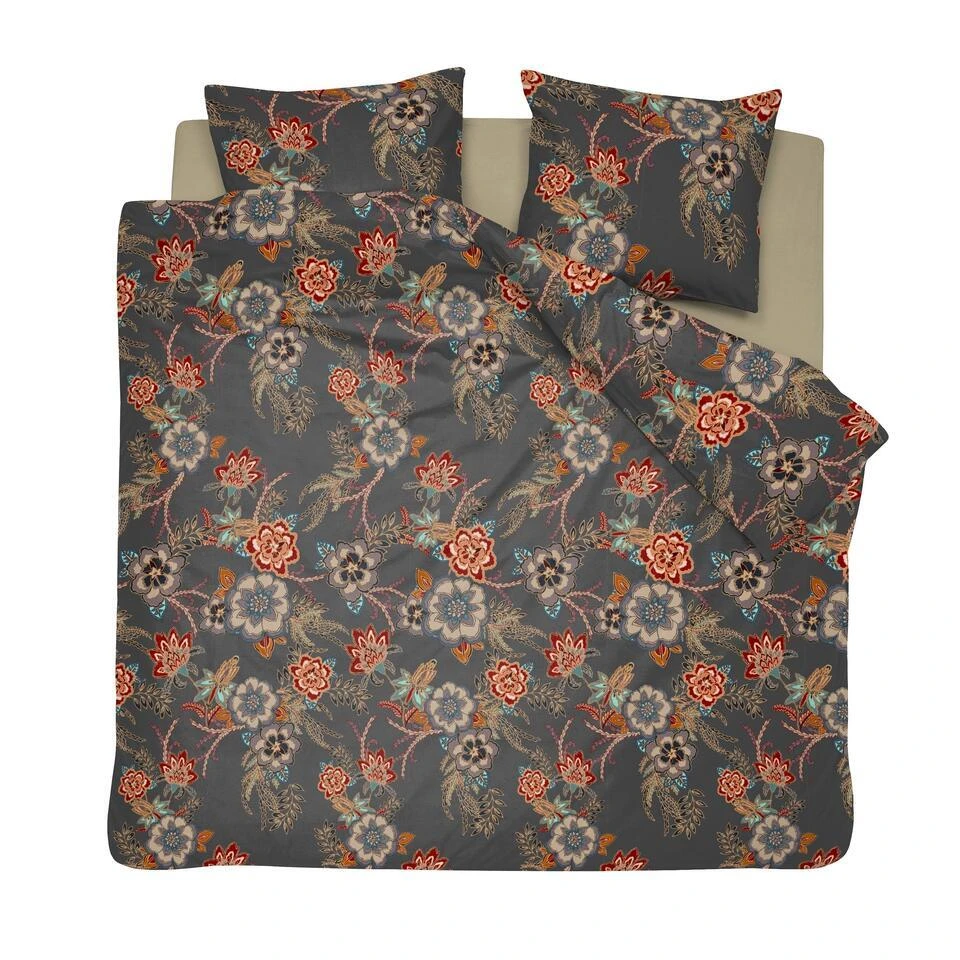 Creëer een wow effect in de slaapkamer met het Melanie dekbedovertrek van Cinderella. Het dekbedovertrek heeft een uitgesproken ontwerp van de meest prachtige bloemen in contrastrijke kleuren. Het ontwerp doet Orientaals aan door het gouden effect en de warme ondergrond. Deze ondergrond heeft een bijzondere tint die te omschrijven is als een paarse antraciet kleur.