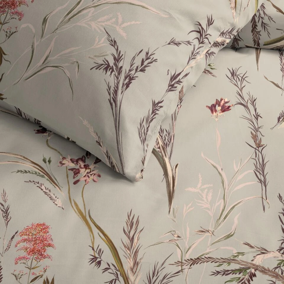 Ervaar het fijne buitengevoel in eigen huis met het satijnen dekbedovertrek Myrtle van Cinderella. De natuur als inspiratiebron en prachtige zachte kleurtinten; dit getekende ontwerp van grassen, wilde bloemen en vogeltjes brengt een nieuwe tendens in de Cinderella collectie waarin we voor rust en kalmte gaan.