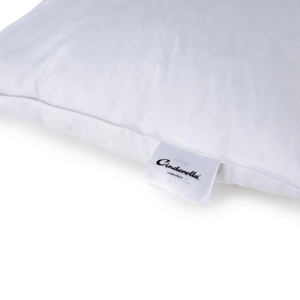 Voor de vulling kozen we 85% kleine eendenveertjes en 15% van het gewicht uit luxe eendendons. Dankzij de dons voelt de Cinderella Soul superzacht en veerkrachtig aan. De dons zorgt bovendien voor lucht in het kussen. Zo kan transpiratievocht vlot en goed wordt afgevoerd. Om ervoor te zorgen dat de vulling niet gaat schuiven hebben we de losse vulling verdeeld in blokken. De Cinderella Soul is dan ook een kussen dat heerlijk volumineus is en blijft, ook na vele, lange nachten.