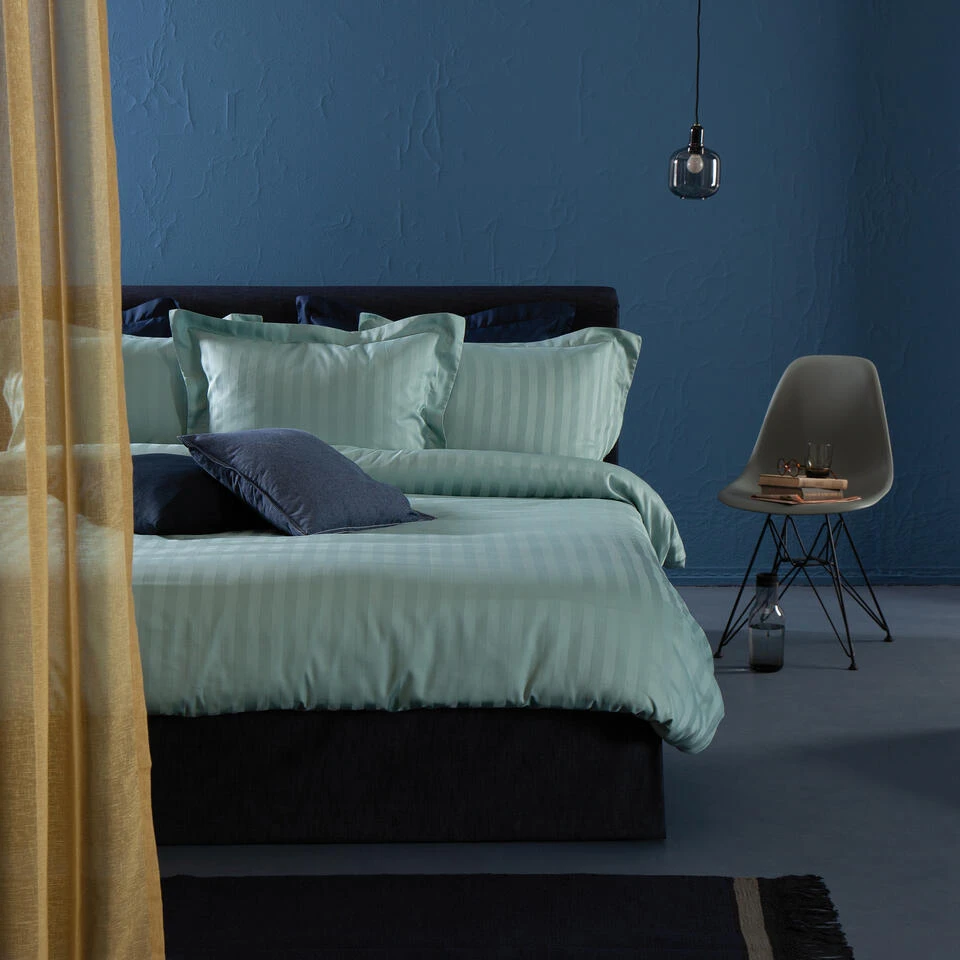 Damai Dekbedovertrek Katoen-satijn – 200×200/220cm – Mist Groen Gestreept