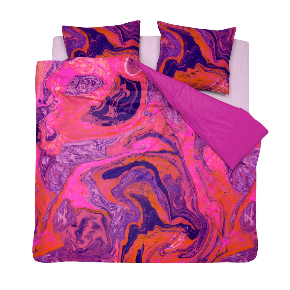 Transformeer de slaapkamer tot een unieke plek met het dekbedovertrek Trance en stap in de magische wereld van Damai. Het spectaculaire dessin van vloeiende vormen en betoverende kleuren maken het dessin Trance tot een buitenaards mooie accessoire voor op bed waaronder je heerlijk weg kan dromen en ontsnappen aan de buitenwereld. Uitgevoerd in zacht katoen-satijn en de kleur ‘Shocking pink’.Dit dekbedovertrek is double face en heeft aan de achterzijde een effen kleur, waardoor je kunt afwisselen.