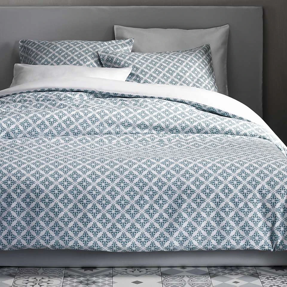 De Witte Lietaer Dekbedovertrek Katoen Satijn, Azulejos Tourmalin. Het bedrukt bedlinnen is een lichtgewicht katoen-satijn dat ultra comfortabel aanvoelt door de satijnbinding, het gekamd katoen en de extra zijdeglans. De hoge weefdichtheid zorgt er ook voor dat de stof heel glad aanvoelt. Het dekbedovertrek, alsook de kussensloop, zijn dubbelzijdig en dus omkeerbaar. Het dekbedovertrek heeft een wijde flessenhals en kan daardoor makkelijk over het dekbed getrokken worden. De Witte Lietaer staat bekend om hun kwaliteitsproducten en rijke geschiedenis. Kortom, met een product van De Witte Lietaer koopt u een voortreffelijke ervaring.