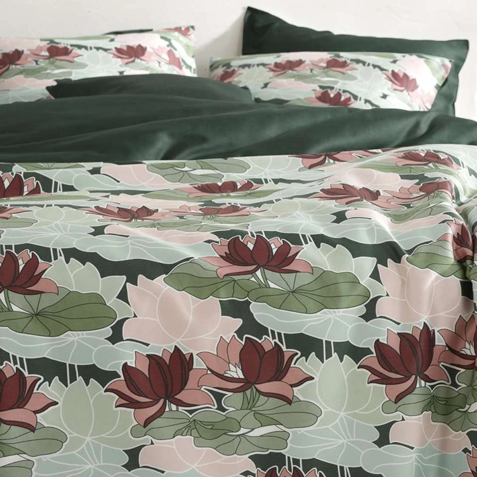 De Witte Lietaer Dekbedovertrek, Koi Tidepool. Prachtig eenpersoons satijn katoenen dekbedovertrek met een hoge weefdichtheid. Het bedlinnen is een lichtgewicht katoen-satijn dat ultra comfortabel aanvoelt door de satijnbinding, het gekamd katoen en de extra zijdeglans. De hoge weefdichtheid zorgt er tevens voor dat de stof glad aanvoelt. Het dekbedovertrek en de kussensloop zijn dubbelzijdig en dus omkeerbaar. Op de voorkant staat een kleurrijke print van waterlelies en de achterzijde heeft een effen kleur. Door de extra wijde flessenhals is de hoes makkelijk over het dekbed te trekken. De Witte Lietaer staat bekend om hun kwaliteitsproducten en rijke geschiedenis. Kortom, met een product van De Witte Lietaer koopt u een voortreffelijke ervaring.Â