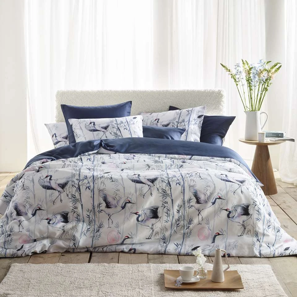 De Witte Lietaer Dekbedovertrek, Mont Blanc Majolica Blue. Prachtig lits jumeaux satijn katoenen dekbedovertrek met een hoge weefdichtheid. Het bedlinnen is een lichtgewicht katoen-satijn dat ultra comfortabel aanvoelt door de satijnbinding, het gekamd katoen en de extra zijdeglans. De hoge weefdichtheid zorgt er tevens voor dat de stof glad aanvoelt. Het dekbedovertrek en de kussenslopen zijn dubbelzijdig en dus omkeerbaar. Op de voorkant staat een dessin van kraanvogels en bamboe en de achterzijde heeft een effen kleur. Door de extra wijde flessenhals is de hoes makkelijk over het dekbed te trekken. De Witte Lietaer staat bekend om hun kwaliteitsproducten en rijke geschiedenis. Kortom, met een product van De Witte Lietaer koopt u een voortreffelijke ervaring.