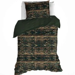 De Witte Lietaer Dekbedovertrek, Rufus Khaki. Prachtig flanel katoenen eenpersoons dekbedovertrek met een hoge weefdichtheid. Dit dekbedovertrek is gemaakt van flanel, dit betekent dat de stof wat is opgeruwd om zachter, wolliger en dikker aan te voelen. Dit is ideaal voor de koudere maanden! Het dekbed heeft aan de voorzijde een bedrukking met een uniek dessin en is aan de achterkant in een uni-kleur afgewerkt, voor een luxueus en kalm effect. Het dekbed kan dus tweezijdig worden gebruikt. De Witte Lietaer staat bekend om hun kwaliteitsproducten en rijke geschiedenis. Kortom, met een product van De Witte Lietaer koopt u een voortreffelijke ervaring.