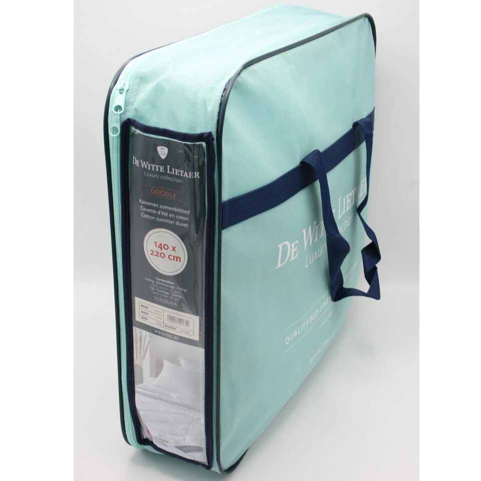 De Witte Lietaer Dekbed Doodle. Doodle is een zeer licht zomer-dekbed in een mooie katoenen kwaliteit, wat heerlijk is op warme dagen. Het vulgewicht van het dekbed is 175 g/m2 en valt daarmee in een lichte warmteklasse. Het dekbed is anti huisstofmuit, vochtregulerend en ademend.