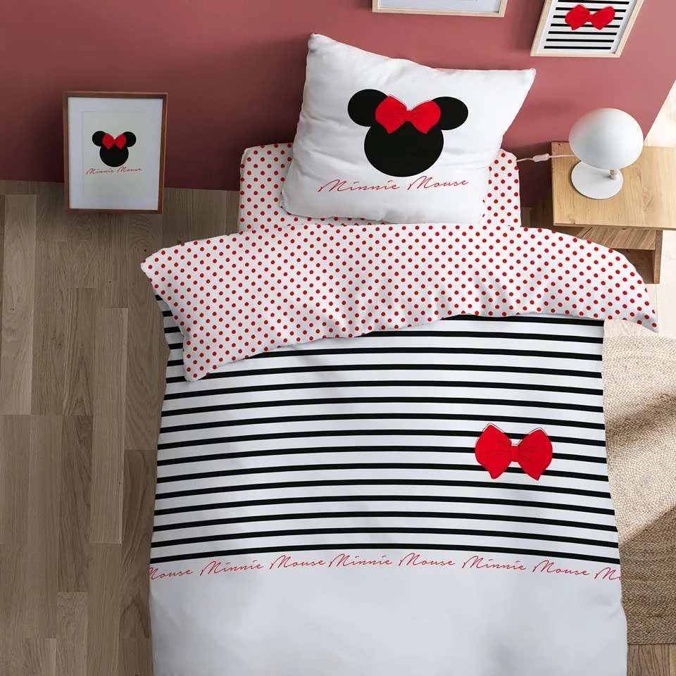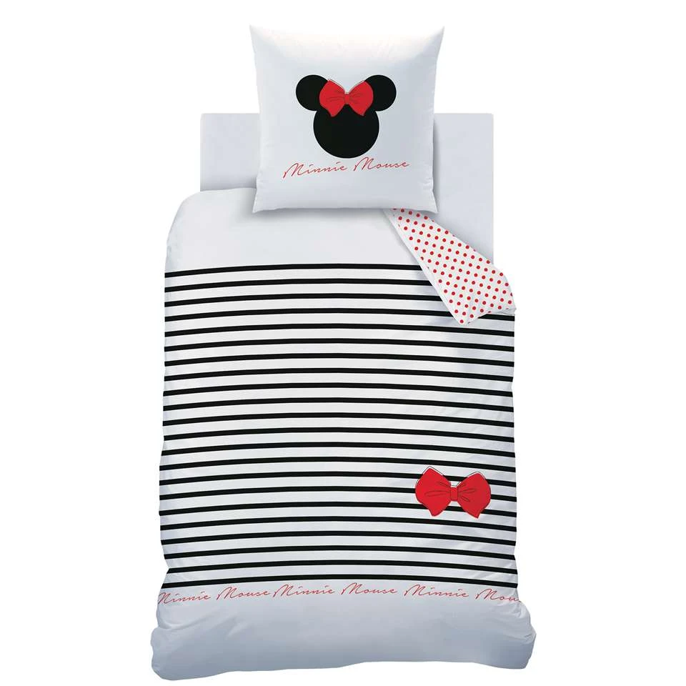 Disney Minnie Mouse Dekbedovertrek, Stripes. Een mooi dekbedovertrek van Disney. Dit leuke, strak ontworpen dekbedovertrek heeft een subtiele Minnie Mouse print. Bestaande uit strepen en het welbekende Minnie strikje. Een geweldige aanwinst voor elke slaapkamer! Zowel het dekbed als het kussensloop heeft een dubbelzijdige bedrukking, waardoor deze omkeerbaar is. Een leuk cadeau idee voor een echte Minnie Mouse fan en ideaal voor een verjaardag of de feestdagen.