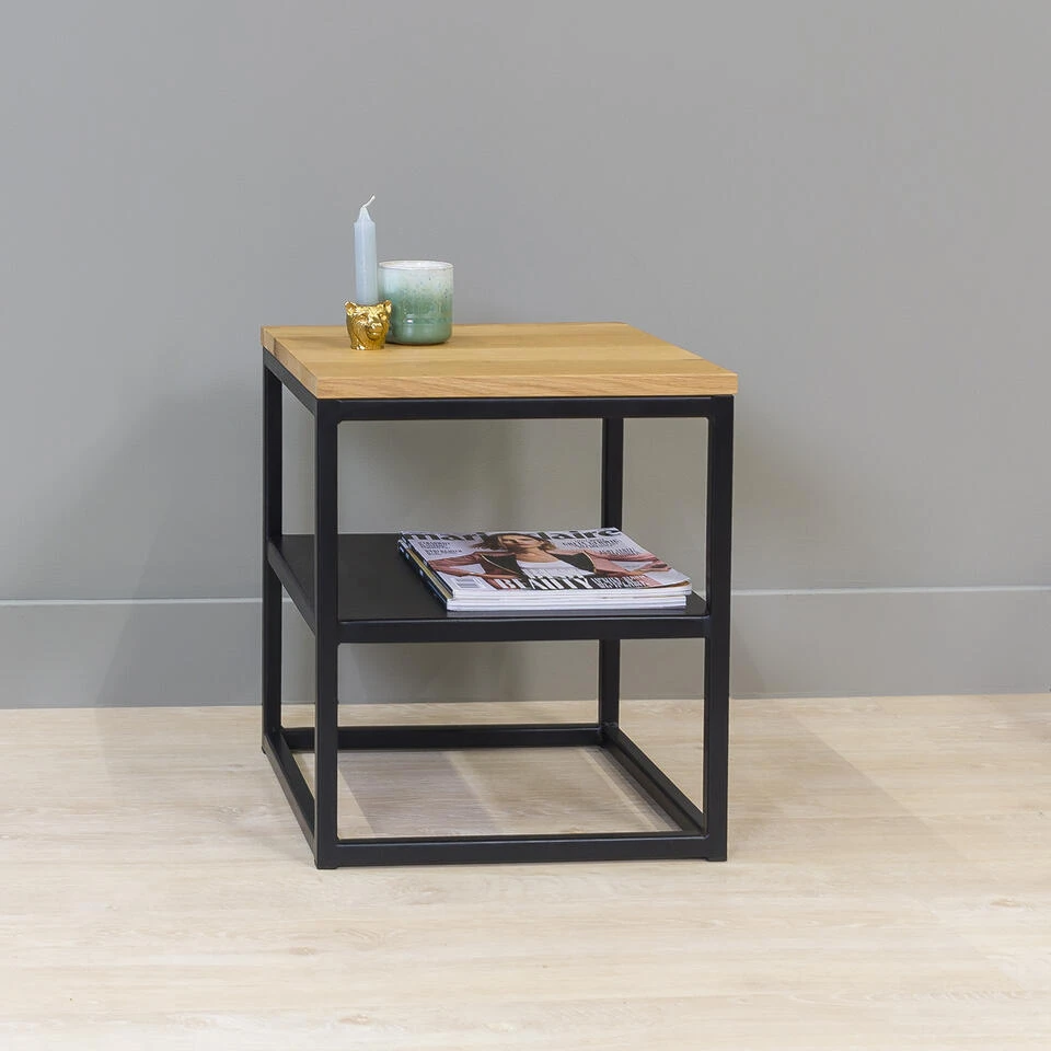 Giga Meubel Nachtkastje Naturel – Open Kastje – 40x40x45cm – Hout & Metaal