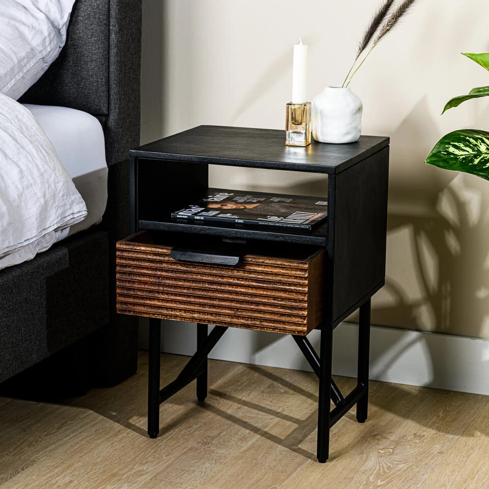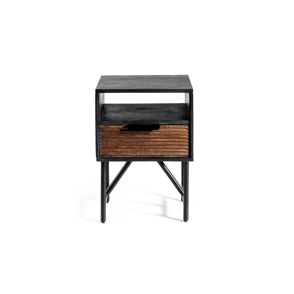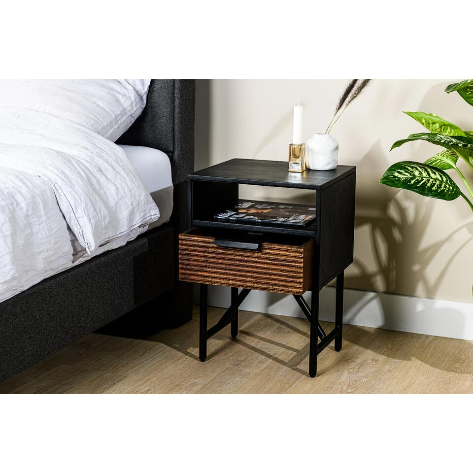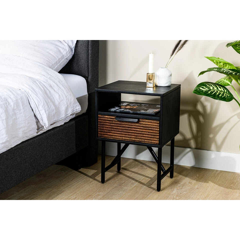 Giga Meubel Nachtkastje Zwart Acaciahout – 35x40x57cm – 1 Lade – Kast Odin