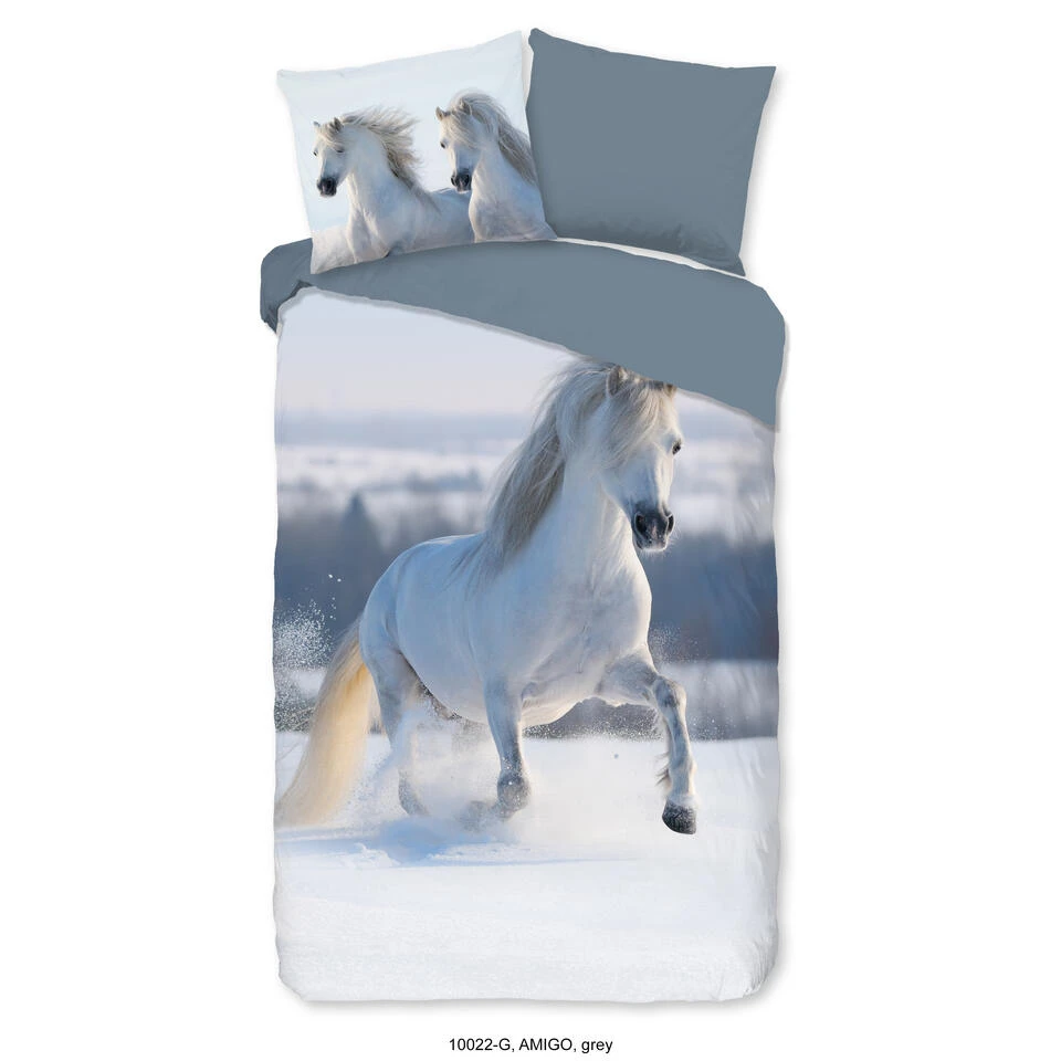 Dekbedovertrek “Amigo” van Good Morning met paarden, in de kleur “Grijs” is gemaakt van 100% Cotton. Deze kwaliteit is ademend, vocht absorberend en voelt zacht en soepel aan.