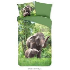 Good Morning Dekbedovertrek “Elephants” – Groen – (140×220 Cm)