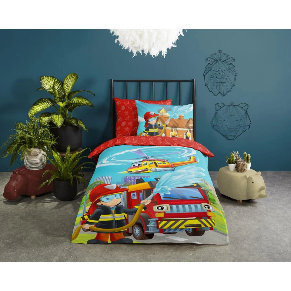 Dekbedovertrek “Fire” van Good Morning met brandweer, in de kleur “Multi” is gemaakt van 100% Cotton. Deze kwaliteit is ademend, vocht absorberend en voelt zacht en soepel aan.