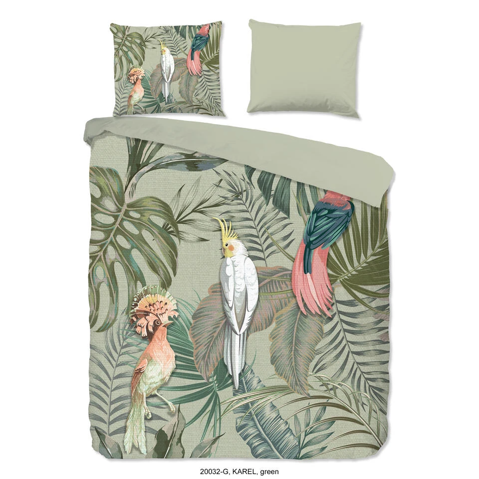 Dekbedovertrek “Karel” van Good Morning met vogels, in de kleur “Groen” is gemaakt van 100% Cotton. Deze kwaliteit is ademend, vocht absorberend en voelt zacht en soepel aan.