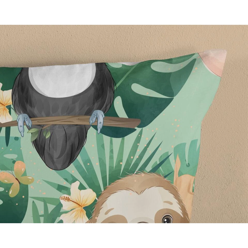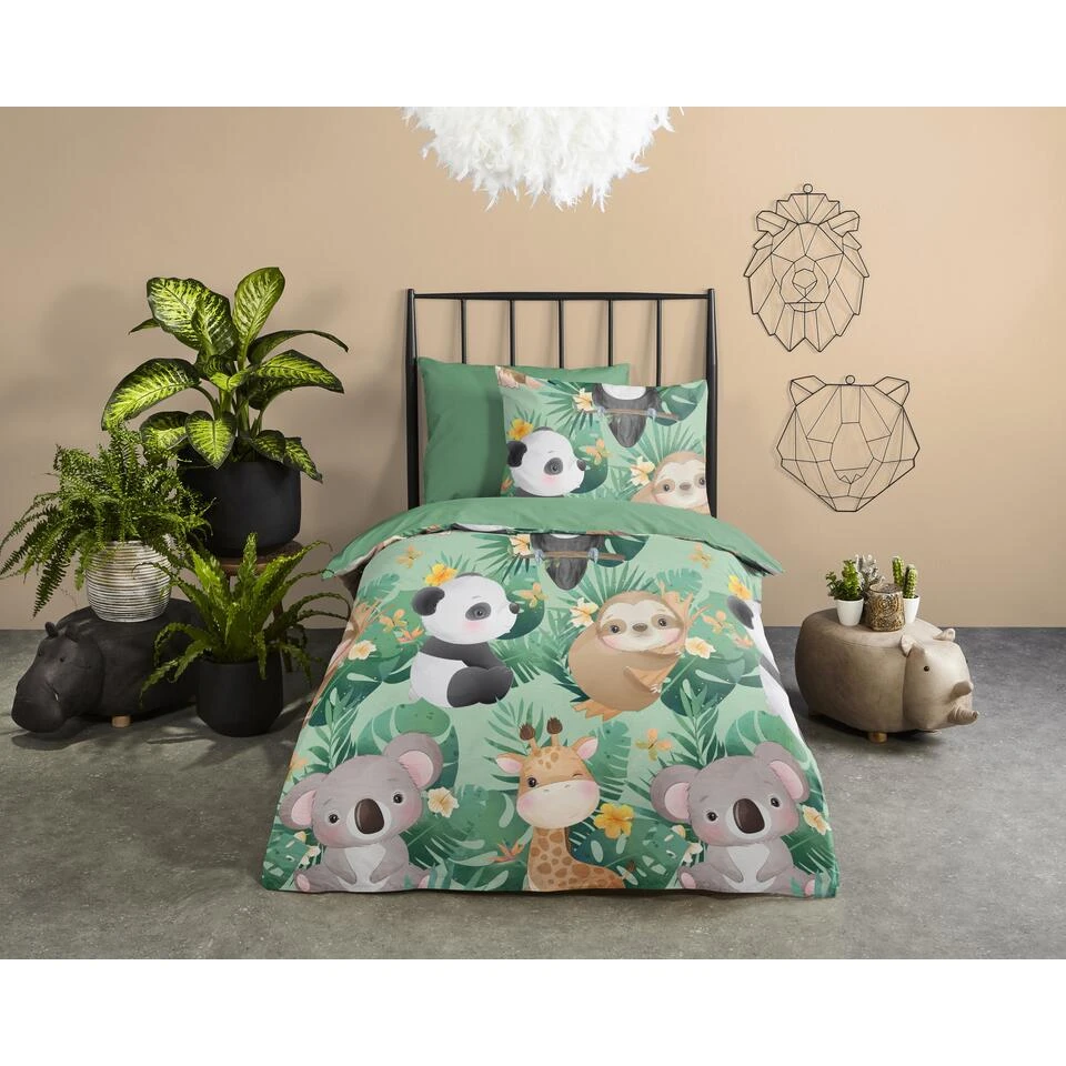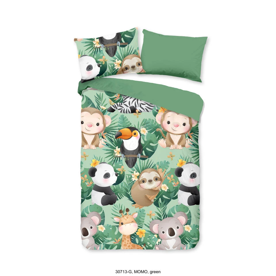 Dekbedovertrek “Momo” van Good Morning met jungle dieren, in de kleur “Groen” is gemaakt van 100% Cotton. Deze kwaliteit is ademend, vocht absorberend en voelt zacht en soepel aan.