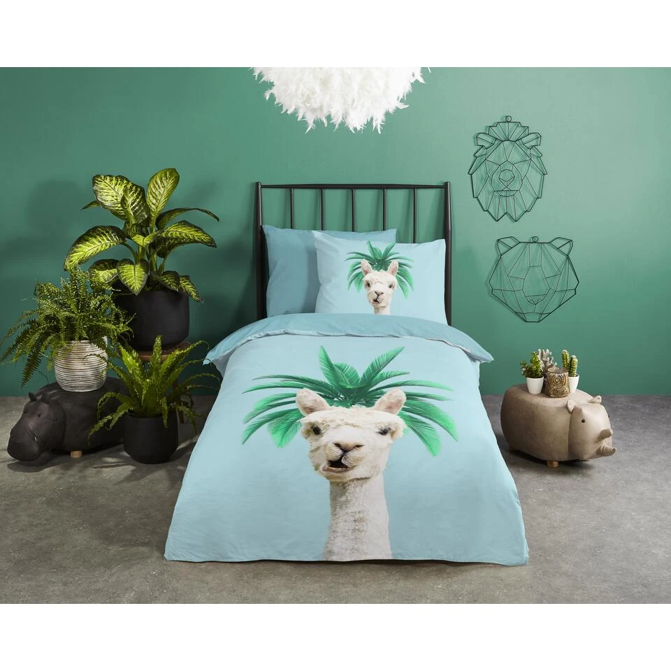 Dekbedovertrek “Pallama” van Good Morning met alpaca, in de kleur “Blauw” is gemaakt van 100% Cotton. Deze kwaliteit is ademend, vocht absorberend en voelt zacht en soepel aan.