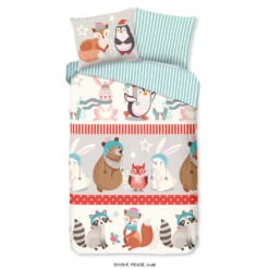 Dekbedovertrek “Peace” van Good Morning met dieren, in de kleur “Multi” is gemaakt van 100% geruwde 100% Cotton/ Flannel. Deze warme, zachte stof is zeer geschikt voor de wintermaanden, ademend en vocht absorberend.
