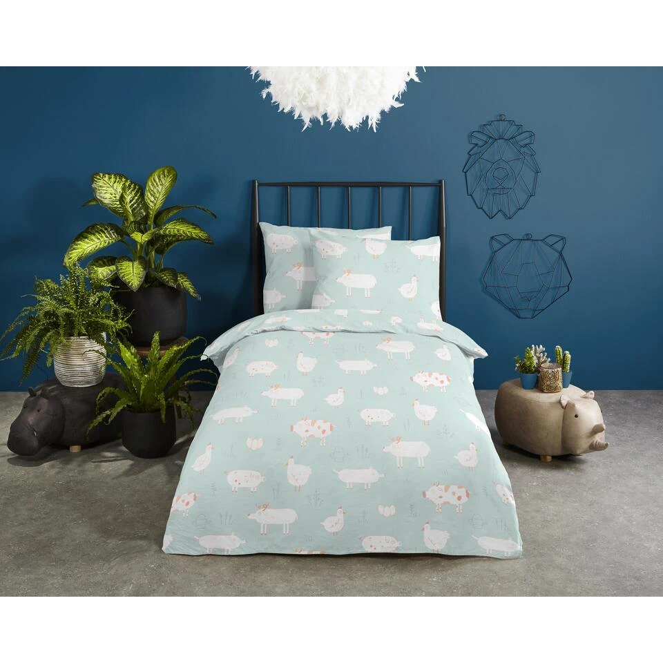 Good Morning Dekbedovertrek “Petting Zoo” – Mint – (140×220 Cm)