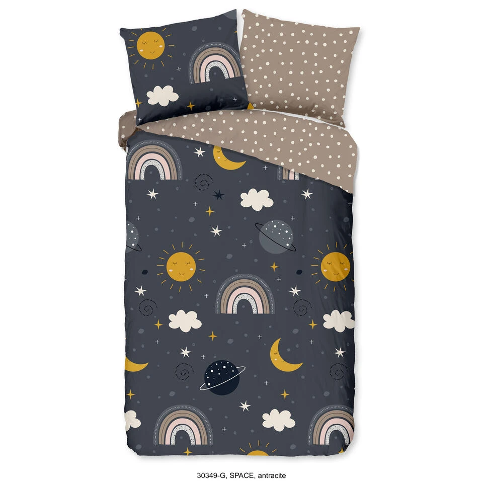 Good Morning Dekbedovertrek “Space” – Antraciet – (140×220 Cm)