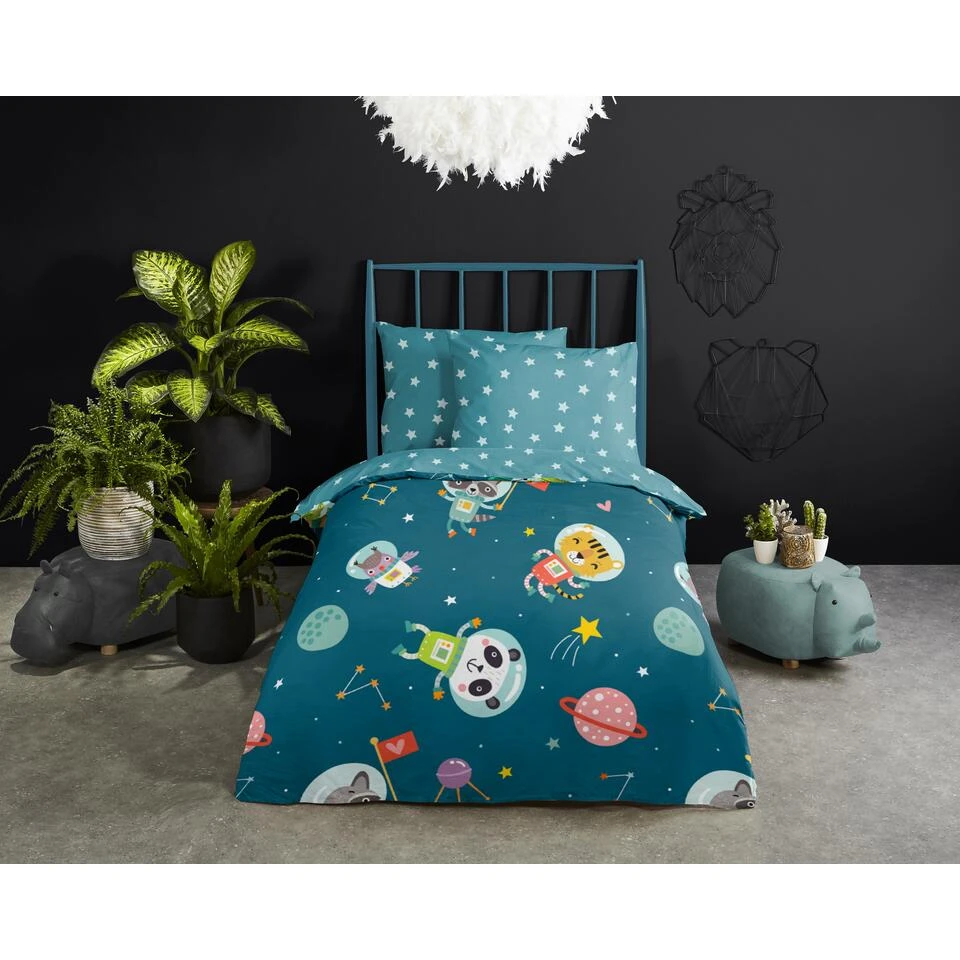 Good Morning Dekbedovertrek “Spacy” – Petrol – (100×135 Cm)