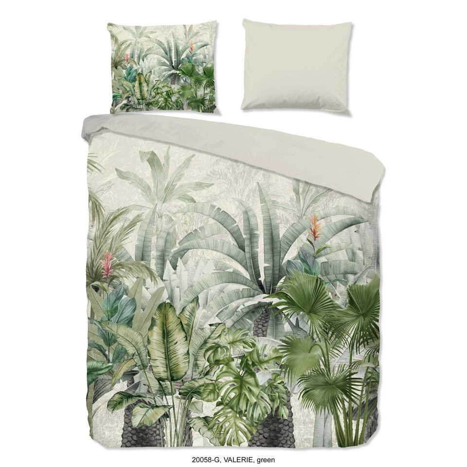 Dekbedovertrek “Valerie” van Good Morning met tropische print, in de kleur “Groen” is gemaakt van 100% Cotton. Deze kwaliteit is ademend, vocht absorberend en voelt zacht en soepel aan.