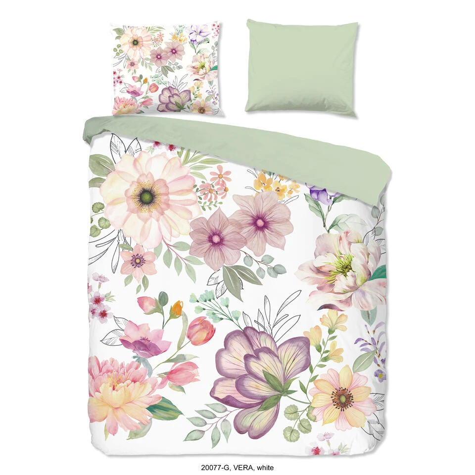 Dekbedovertrek “Vera” van Good Morning met bloemen, in de kleur “Wit” is gemaakt van 100% Cotton. Deze kwaliteit is ademend, vocht absorberend en voelt zacht en soepel aan.