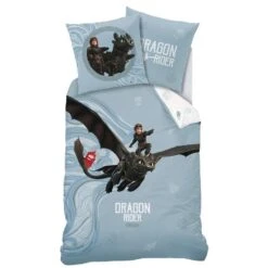 Hoe Tem je een Draak dekbedovertrek Riders. Lichtblauw Hoe Tem je een Draak overtrek, geheel in stijl van deel 3. Laat Hikkie en zijn draak je meenemen in een diepe slaap, zo’n coole droom heb je nog nooit gehad!Â