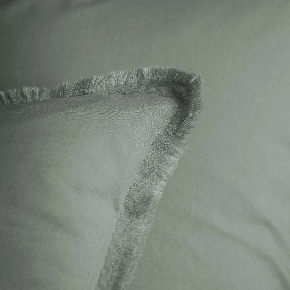 Matt & Rose Set Kussenslopen Gewassen Katoen, Groen. Een prachtige set kussenhoezen van gewassen katoen. Door de wassing heeft het materiaal een lichte kreukel, waardoor het een trendy uitstraling krijgt en strijken overbodig is. Gewassen katoen is uiterst zacht en soepel en zorgt daardoor voor comfortabele nachten. De kussenslopen hebben een franje rand, wat een leuk effect geeft.Â