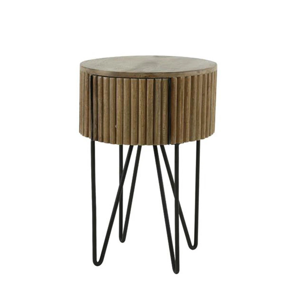 Ben jij op zoek naar een mooi en praktisch nachtkastje? Ronde nachtkastje industrieel Hans is gemaakt van massief mangohout wat zorgt voor een levendige en warme uitstraling. Het nachtkastje is voorzien van één lade zodat je jouw spullen goed kan opbergen. De hoeken van nachtkastje Hans zijn afgevlakt waardoor het nachtkastje een trendy uiterlijk krijgt. Natuurlijk is het nachtkastje ook prima als bijzettafel te gebruiken.Â