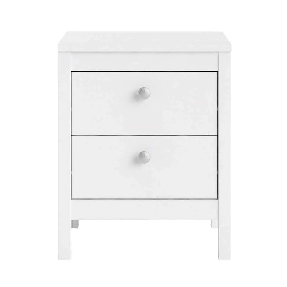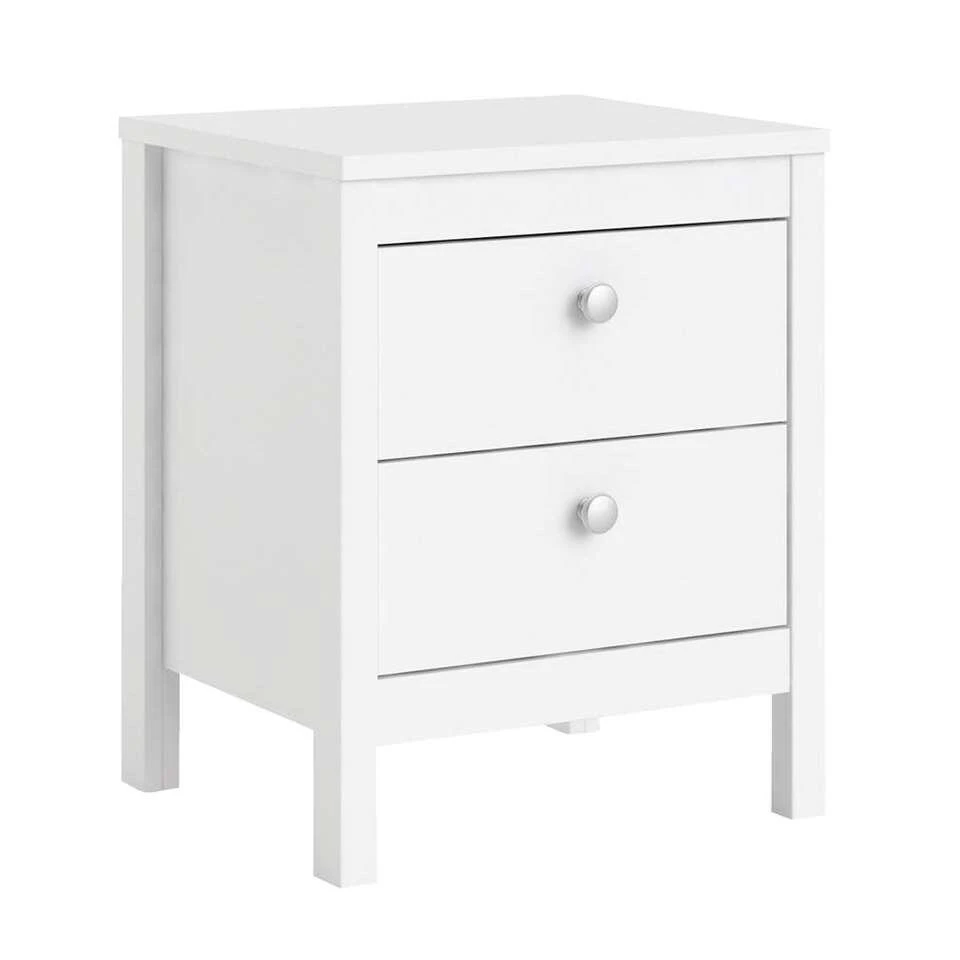 Nachtkastje Madeira is een stijlvol kastje voor in de slaapkamer. Dit kastje is wit van kleur en gemaakt van spaanplaat. Dit kastje heeft 2 ruime lades voor het opbergen van allerlei handige spullen. Bovenop kan een nachtlampje, wekker of andere accessoires worden gezet. De totale afmeting (hxbxd) van dit kastje is 54x44x38 cm.