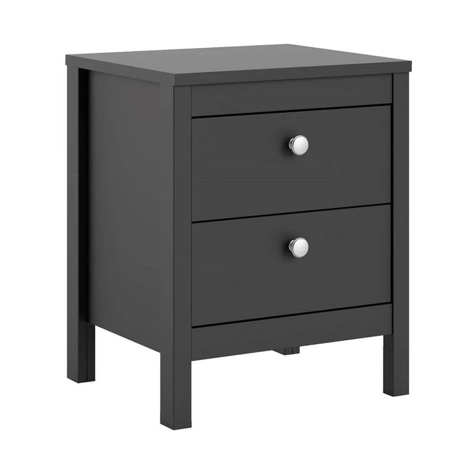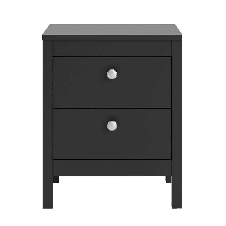 Nachtkastje Madeira is een stijlvol kastje voor in de slaapkamer. Dit kastje is zwart van kleur en gemaakt van spaanplaat. Dit kastje heeft 2 ruime lades voor het opbergen van allerlei handige spullen. Bovenop kan een nachtlampje, wekker of andere accessoires worden gezet. De totale afmeting (hxbxd) van dit kastje is 54x44x38 cm.