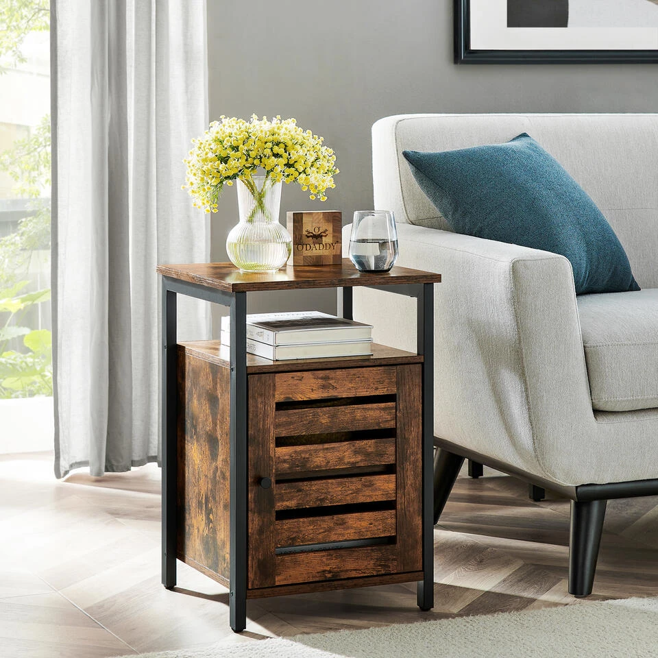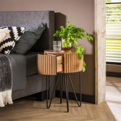 Hoe vaak heb je er al niet aan gedacht om je slaapkamer aan te pakken als je de telefoon op het oude nachtkastje legt? Misschien met iets vernieuwends, iets dat jou weerspiegelt? Geboren uit de vereniging van rustieke panelen en staal, is dit nachtkastje de verandering waar je op hebt gewacht. Gebruik hem als nachtkastje of als bijzettafel, de keus is aan jou.
