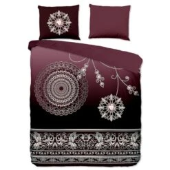 Dekbedovertrek “Asiya” van Pure met mandala’s, in de kleur “Bordeaux” is gemaakt van 100% Microfiber. Het is een prettige stof, gemaakt van synthetische garen maar vergelijkbaar met het natuurlijke materiaal katoen, doordat het zacht en soepel aanvoelt. Het is geschikt voor ieder jaargetijde en door de lichte glans heeft het een luxe uitstraling. Na het wassen is deze stof snel droog en kreukt niet tot nauwelijks waardoor strijken (vrijwel) niet nodig is. Ook beschermt het tegen bacteri’n, vuil en huisstofmijt