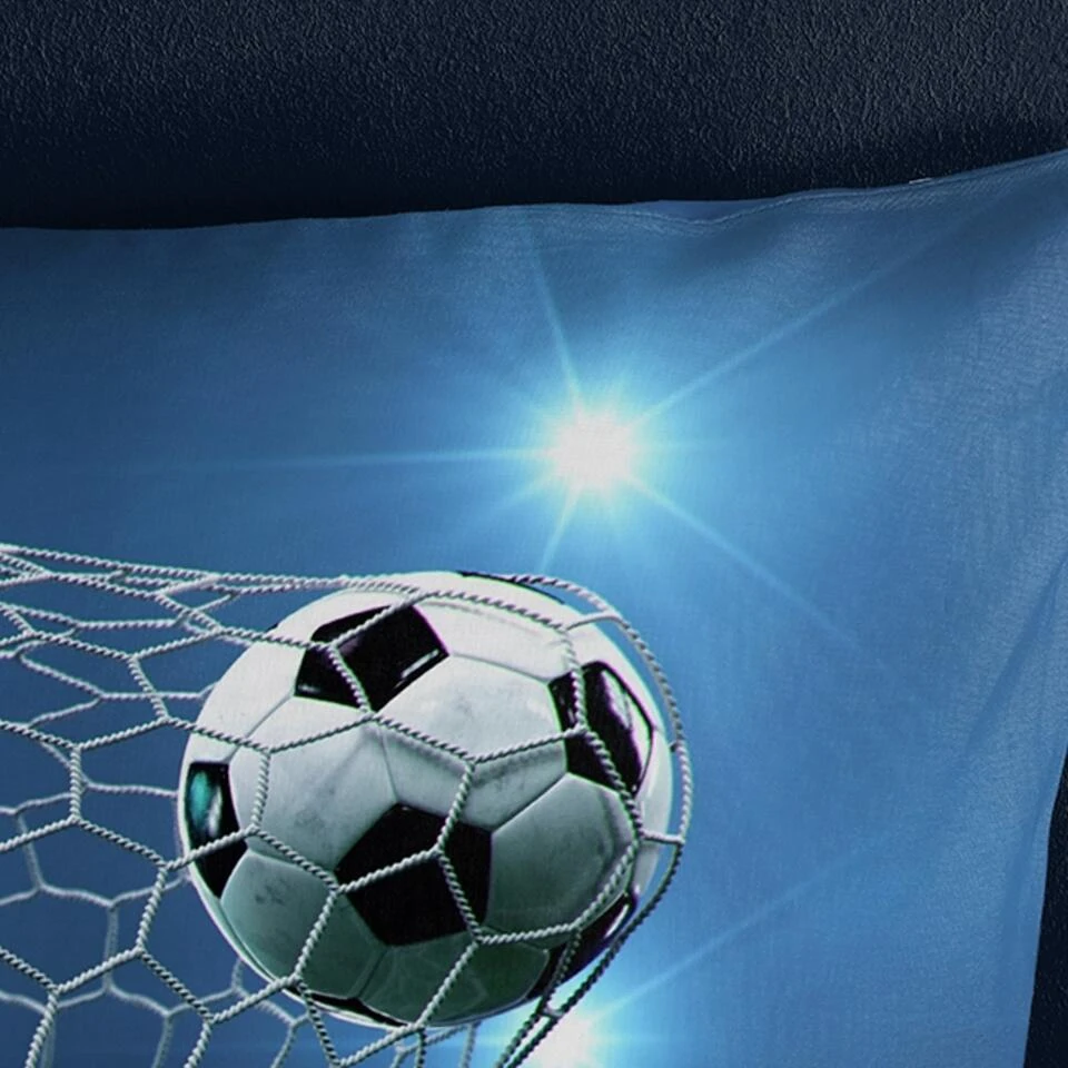 Dekbedovertrek “Fans” van Pure met voetbal, in de kleur “Blauw” is gemaakt van 100% Microfiber. Het is een prettige stof, gemaakt van synthetische garen maar vergelijkbaar met het natuurlijke materiaal katoen, doordat het zacht en soepel aanvoelt. Het is geschikt voor ieder jaargetijde en door de lichte glans heeft het een luxe uitstraling. Na het wassen is deze stof snel droog en kreukt niet tot nauwelijks waardoor strijken (vrijwel) niet nodig is. Ook beschermt het tegen bacteri’n, vuil en huisstofmijt