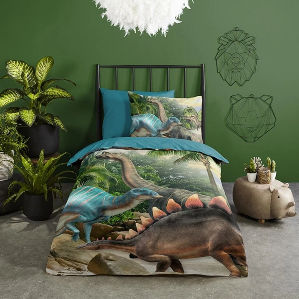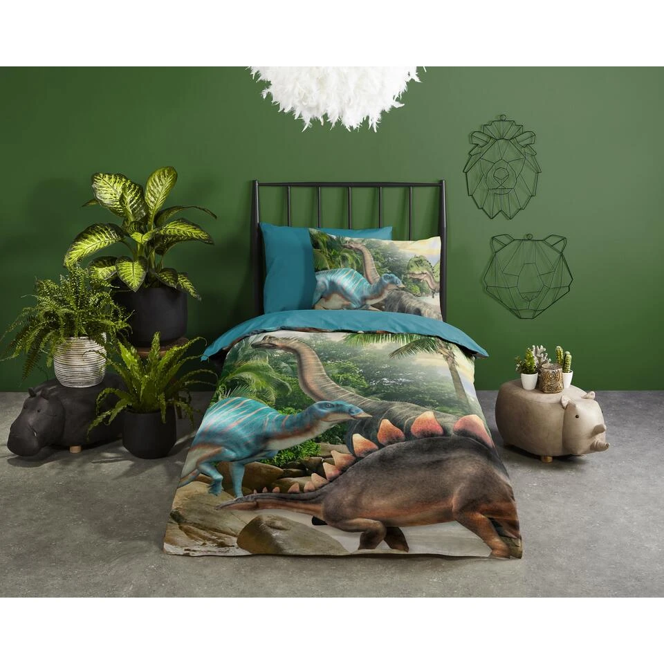 Dekbedovertrek “Neneh” van Pure met dinosaurussen, in de kleur “Multi” is gemaakt van 100% Microfiber. Het is een prettige stof, gemaakt van synthetische garen maar vergelijkbaar met het natuurlijke materiaal katoen, doordat het zacht en soepel aanvoelt. Het is geschikt voor ieder jaargetijde en door de lichte glans heeft het een luxe uitstraling. Na het wassen is deze stof snel droog en kreukt niet tot nauwelijks waardoor strijken (vrijwel) niet nodig is. Ook beschermt het tegen bacteri’n, vuil en huisstofmijt