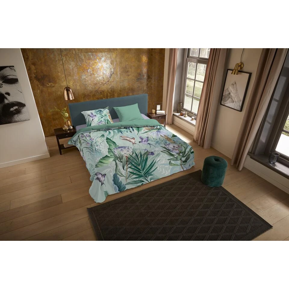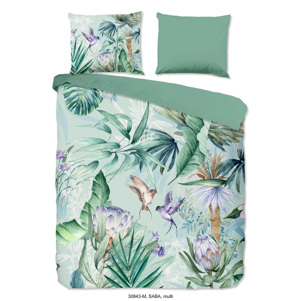 Dekbedovertrek “Saba” van Pure met jungle print, in de kleur “Multi” is gemaakt van 100% Microfiber. Het is een prettige stof, gemaakt van synthetische garen maar vergelijkbaar met het natuurlijke materiaal katoen, doordat het zacht en soepel aanvoelt. Het is geschikt voor ieder jaargetijde en door de lichte glans heeft het een luxe uitstraling. Na het wassen is deze stof snel droog en kreukt niet tot nauwelijks waardoor strijken (vrijwel) niet nodig is. Ook beschermt het tegen bacteri’n, vuil en huisstofmijt