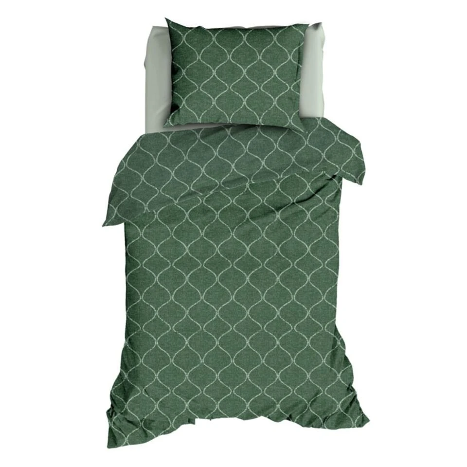 Romanette Flanellen Dekbedovertrek Murad Groen-2-persoons (200 X 200/220 Cm)