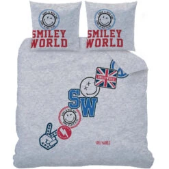 Smiley World Dekbedovertrek, Spirit. Mooi tweepersoons dekbedovertek van Smiley World. De blije gezichten en vrolijke versieringen maken dit dekbed erg mooi!