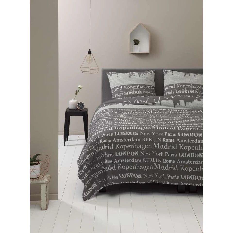 Romanette Flanellen Dekbedovertrek Duchesse Wit/Antraciet-140×200/220