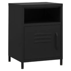 Het nachtkastje is gemaakt van staal, waardoor het duurzaam en gemakkelijk schoon te maken is. De kast heeft 1 open schap en 1 deur, en biedt voldoende ruimte om je dvd’s, multimedia-apparaten, boeken en kleine essentiële spullen georganiseerd en binnen handbereik te houden. Dankzij de nivelleerders kan je de hoogte naar wens aanpassen.