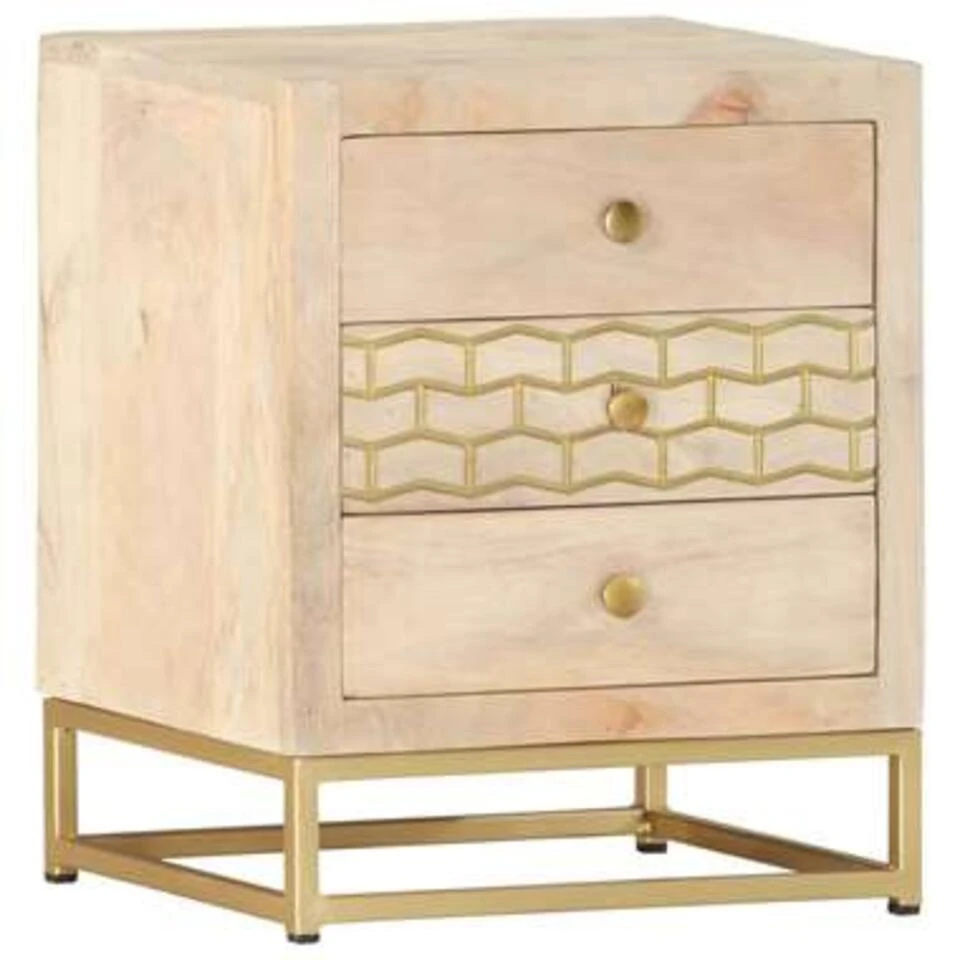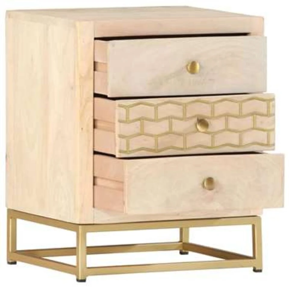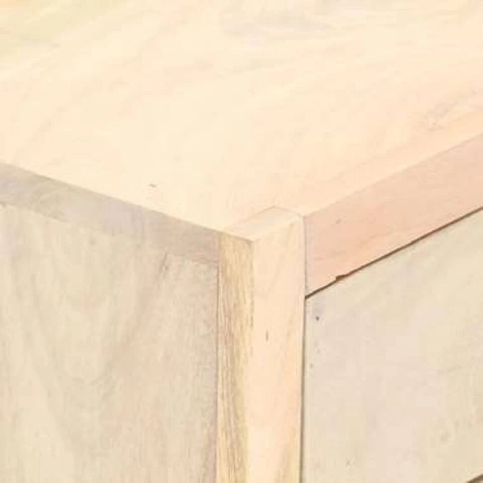 Het nachtkastje is handgemaakt van mangohout en is massief, stabiel, duurzaam en mooi. Het vakmanschap draagt bij aan de spectaculaire retro stijl. Elke stap van het proces wordt met de grootste zorg uitgevoerd, of het nu gaat om polijsten, schilderen of lakken. Het vakmanschap en de mooie houtnerven maken elk meubel uniek en net iets anders dan de rest. Het stevige blad en de 3 lades bieden je voldoende ruimte om je boeken, glazen, afstandsbedieningen en andere spulletjes geordend en binnen handbereik te houden.