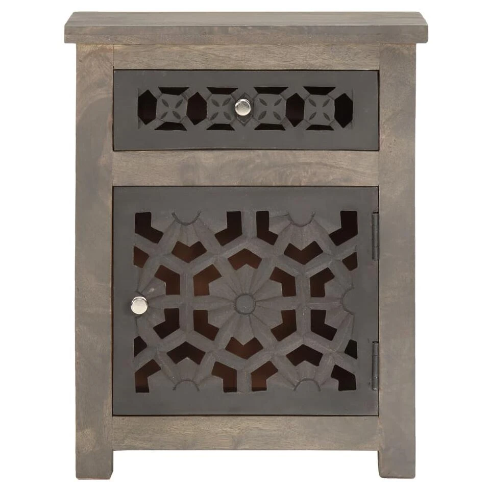 Dit houten nachtkastje in klassieke stijl met gesneden bloemontwerp voegt een vleugje rustieke charme toe aan je interieur.