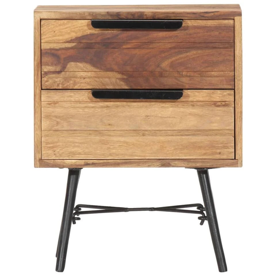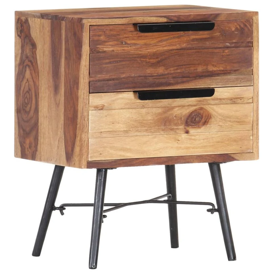 Dit nachtkastje is gemaakt van sheeshamhout. Sheesham is een tropisch hardhout dat bekend staat om zijn rijke nerven en ook rozenhout of palissander genoemd wordt. Je kan een bedlampje, wekker of iets anders op het kastje plaatsen. De 2 lades bieden voldoende ruimte om allerlei kleinere spullen georganiseerd en binnen handbereik te houden. Het is eenvoudig te monteren.