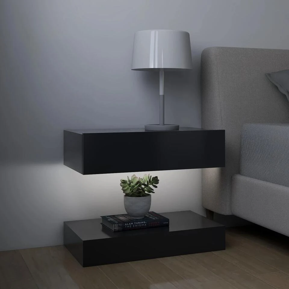 De stevige constructie van deze kast maakt hem zeer duurzaam. Er is voldoende ruimte om je tijdschriften, boeken, afstandsbedieningen en andere spullen netjes geordend te houden. Deze nachtkastjes zijn voorzien van RGB LED-verlichting, die verschillende menu’s heeft om de verlichtingskleur in te stellen en de kleur automatisch laat veranderen. De LED-lampjes benadrukken de moderne uitstraling en dragen bij aan de trendy uitstraling. Deze meubelen zijn gemakkelijk schoon te maken met een vochtige doek.
