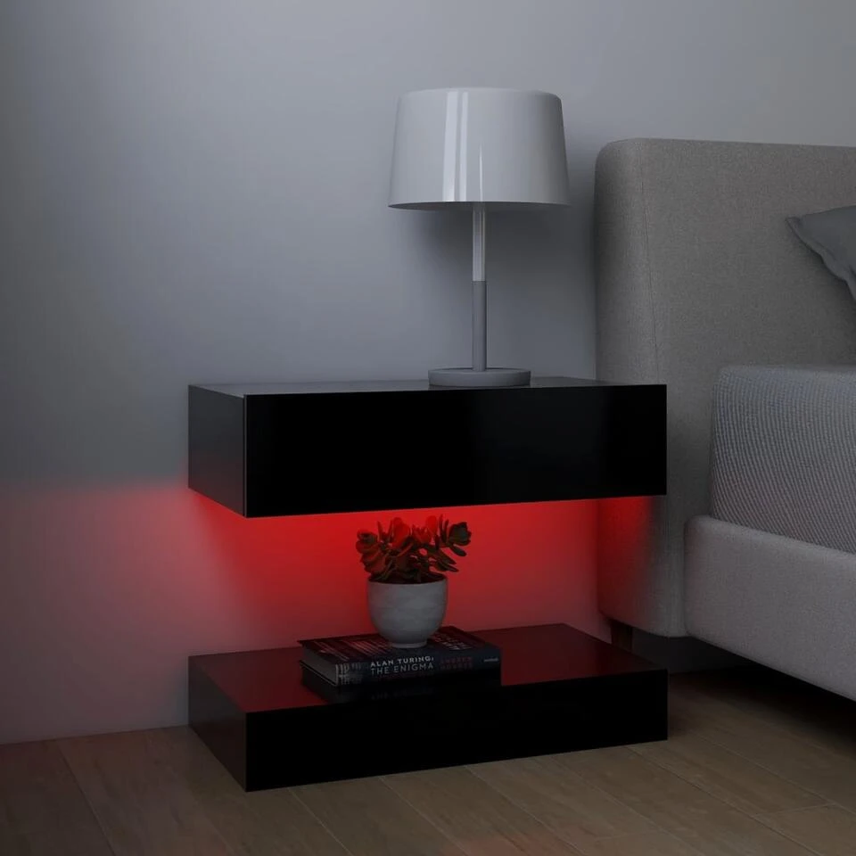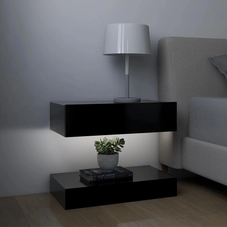 De stevige constructie van deze kast maakt hem zeer duurzaam. Er is voldoende ruimte om je tijdschriften, boeken, afstandsbedieningen en andere spullen netjes geordend te houden. Deze nachtkastjes zijn voorzien van RGB LED-verlichting, die verschillende menu’s heeft om de verlichtingskleur in te stellen en de kleur automatisch laat veranderen. De LED-lampjes benadrukken de moderne uitstraling en dragen bij aan de trendy uitstraling. Deze meubelen zijn gemakkelijk schoon te maken met een vochtige doek.